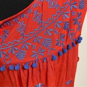 Umgee Embroidered Sleeveless Mini Dress Red Orange Size Large