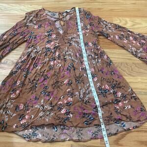 Umgee Fall Floral Long Bell Sleeve Tunic Dress Small