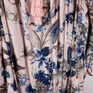 Umgee Floral Bell Flounce Sleeve Tunic Blouse Ruffle Tassel Tie Neck Boho L NWT