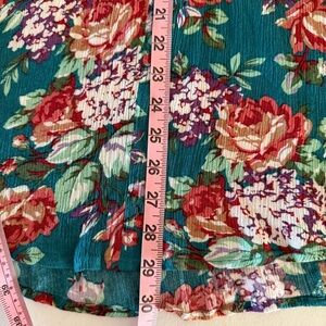 Umgee Floral Boho Dress Keyhole Dark Jade Peasant Tunic Hippie Women’s Size S