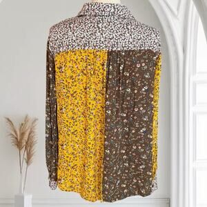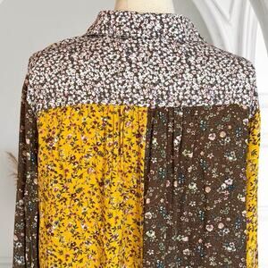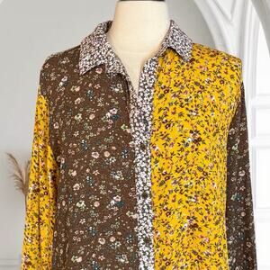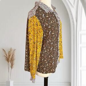 Umgee Floral Colorblock Shirt Blouse Sz L Longer length Roll Tab Sleeves Boho