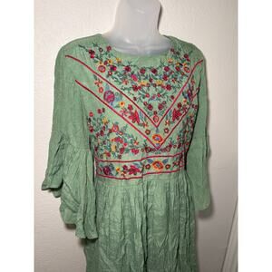 Umgee Floral Embroidered Bell Sleeve Tunic Dress - Size L