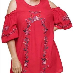 Umgee | Floral Embroidered Cold Shoulder Dress