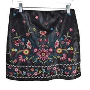 Umgee Floral Embroidered Vegan Leather High Waist A-Line Mini Skirt Small NWT