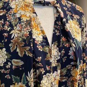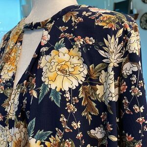 Umgee Floral Keyhole Mini Tent Dress A Line Navy Blue Boho Long Sleeves 80’s