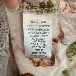 Umgee Floral Mini Dress Sleeveless with Crochet Cut Out V-neck Size Medium Tunic
