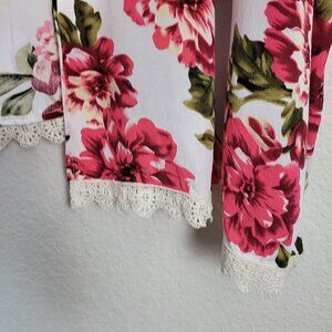 Umgee Floral Open Front Kimono Cardigan Crocheted Trim Feminine Cover Up Boxy