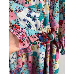 Umgee Floral Patchwork Dress S Pink Mini Crochet Boho Feminine Western Classic