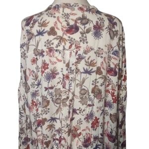 Umgee Floral Print Pleat Front Cotton Blend Peasant Sleeve Mini Dress Large