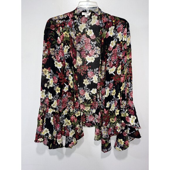 Umgee Floral Sheer Kimono Cardigan With Bell Sleeves, Large