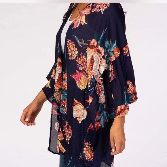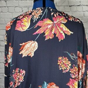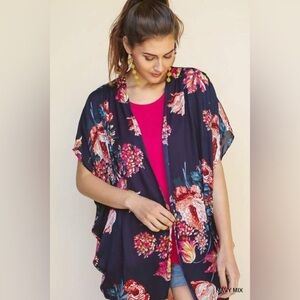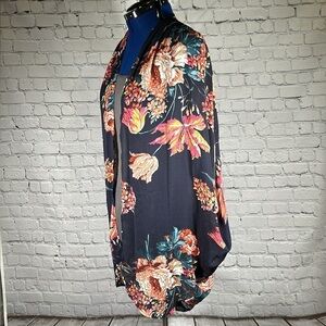 Umgee Floral Spring Bloom Cocoon Kimono Long Cardigan Wrap oversized open front Navy sz M/L
