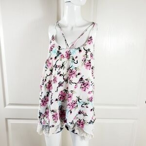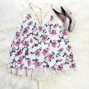 Umgee Floral Swing Tank Top Lace Trim Flowy NWT Size M Boho Cottagecore Romantic