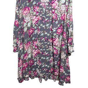 Umgee Floral Tunic Mini Dress Gray Pink Boho Cottagecore Small
