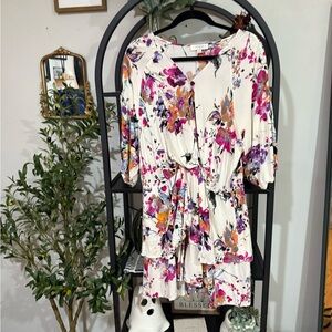 Umgee Floral V-Neck Dress - Pink and Purple size plus size 1x