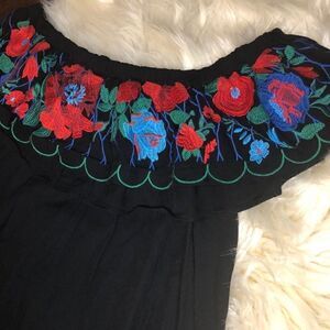 Umgee Floral Embroidered Off The Shoulder tunic sz small