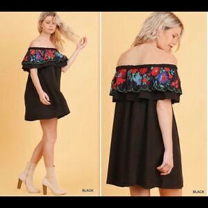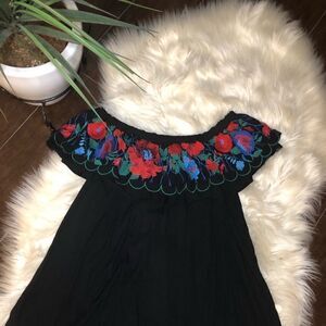 Umgee Floral Embroidered Off The Shoulder Tunic/Mini Dress Small, see measurements Preloved, EUC