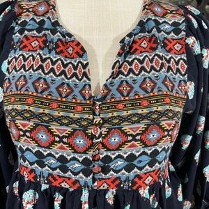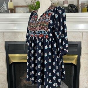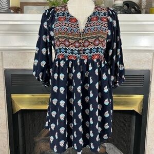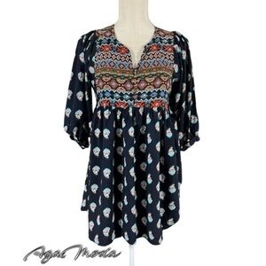Umgee Flowy Bohemian Style Baby Doll Style Tunic Top with Blouson Sleeves