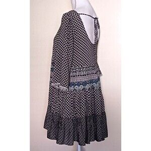 Umgee Flowy Boho Mixed Print Tiered Ruffle Tunic Top Sz S
