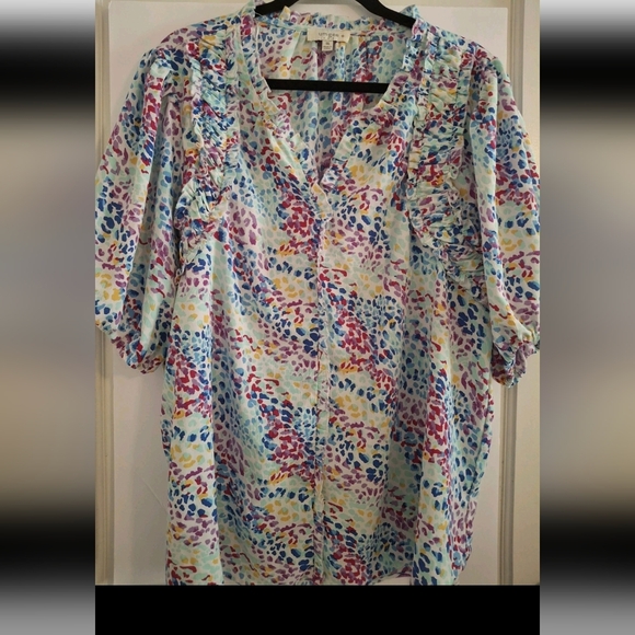 Umgee Flowy Ruffle Patterned Top Sz 1X