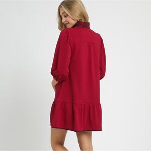 Umgee French Terry Ruffle Hem Dress with Plaid Trim Elegant Red Women's Dress sz