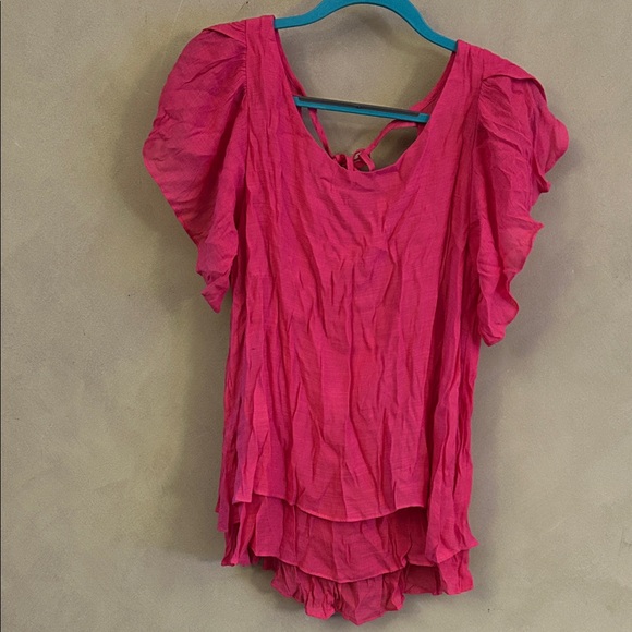 Chic fuchsia blouse with ruffled sleeves. Lightweight and stylish. Perfect for casual outings.