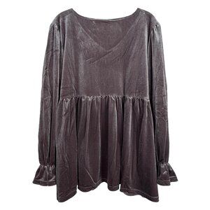 Umgee Velvet Smocked Ruching Blouse. Size: 3X. Color: GRAY silver pewter. Super soft velvet material with lots of stretch. This top is so flattering and could fit many different sizes due to the smocked bodice and stretchy, soft material. Note: Umgee brand tag has been removed.