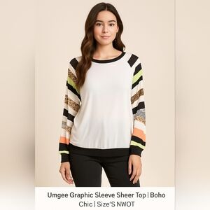 Umgee Graphic Sleeve Sheer Top | Boho Chic | Size S NWOT