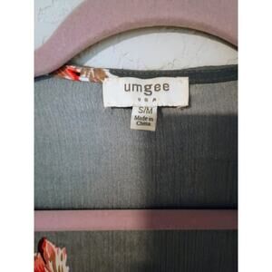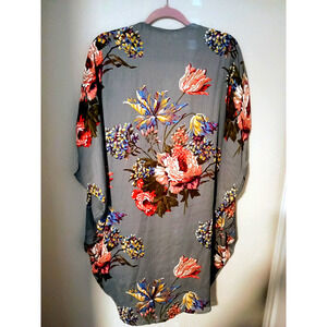 Umgee Gray Floral Long Open Front Kimono Top Silky Polyester Sz S/M or OS