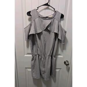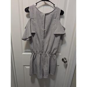 Umgee Gray Seersucker Cold Shoulder Romper Size M Summer Casual Travel Beach