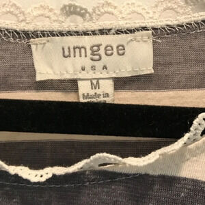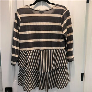 Umgee Gray and Cream Multi-Layered and Striped Tunic. Size Medium.