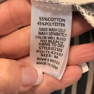 Umgee Multi-Striped Tunic Top in Gray and Cream. Size Medium.