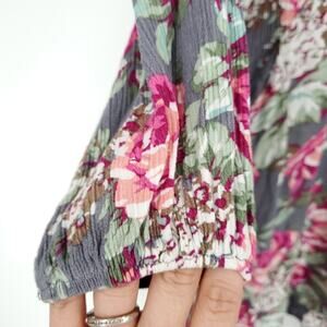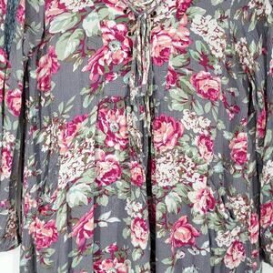 Umgee Gray and Pink Floral Long Sleeve Tunic Dress Small