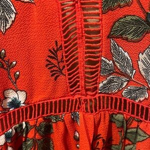 Umgee Harvest Red Floral Long Sleeve V Neck, LadderLace insets Dress, size Large