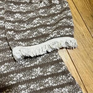 Umgee Heathered Striped Knit Bell Sleeve Round Neck Top 1X Tan & Cream Boho