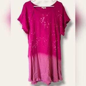 Umgee Hot Pink Ombre Bleach Dye Frayed Flowy Linen Blend Mini Dress Resortwear Casual Baby Shower.