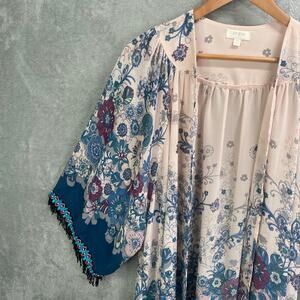 Umgee Kimono Size M/L Floral Fringe Indie Boho Chic Fairy Grunge Festival