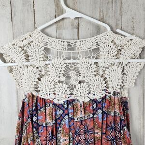 Umgee Sleeveless Lace Embellished Tile Print Top.