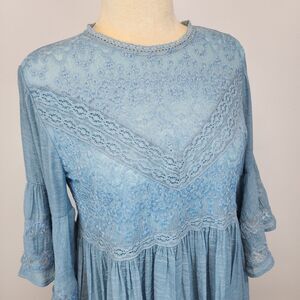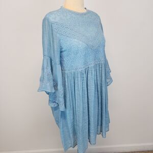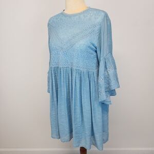 Umgee Lace Flare Sleeve Babydoll Dress Size M Blue Embroidered Fairy Romantic