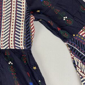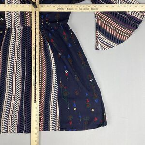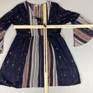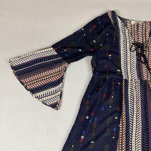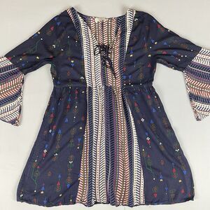 Umgee Lace Up Front Bell Sleeve Mini Dress Tunic Women's Size Small Blue Floral Boho Southwestern SantaFe.