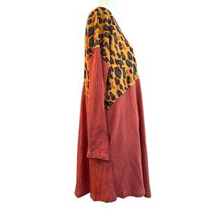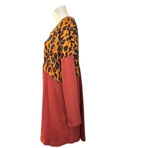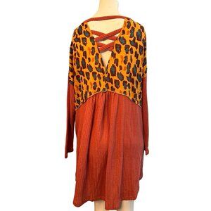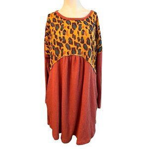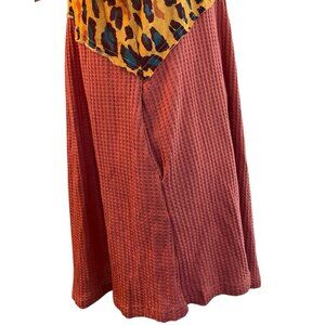Umgee Ladies Small Relaxed Salmon Black Leopard Print Long Sleeve Waffle Pockets