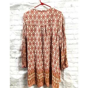 Layflat measurements are: length 35; chest 23; sleeve length (from shoulder seam) 24. This Umgee layered tunic dress features a charming tie-back design and a flowy, boho cottage style. Perfect for casual outings or adding a touch of elegance to your wardrobe, this lightweight dress is both stylish and comfortable.