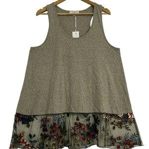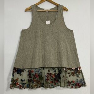 Umgee Layering Tunic Tank Top with Floral Embroidered