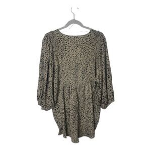 Umgee Leopard Print V Neck Babydoll Large Blouse