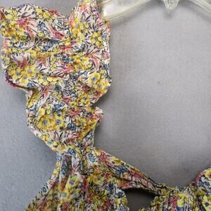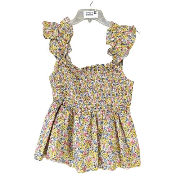 Umgee Liberty Floral Peplum Peasant Crop Tank Top Women's L Ruffle Strap Smocked