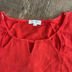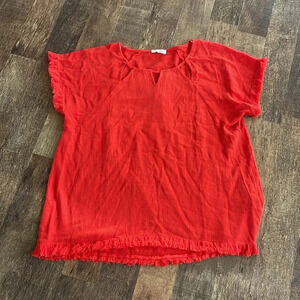 Linen Blend Cut Out Round Neckline Top With Frayed Fringe Hem Umgee