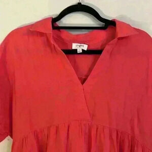 Umgee Linen Blend Dip Dye Collared Dress with Frayed Hem - Size S