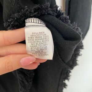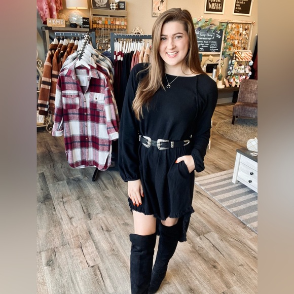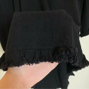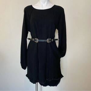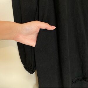 Umgee black cotton linen blend high low long sleeve midi dress with side pockets and raw hemline