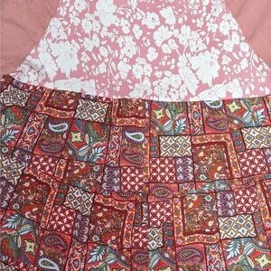Umgee USA Linen Hi Low Mini Dress or Modest Tunic Mixed Media Medium Pink Boho Paisley Floral Fringe 55% Linen 45% Rayon 100% Polyester 98% Polyester 2% Spandex.