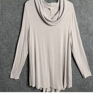 Umgee Long Line Tunic Top Women M Cowl Neck Ribbed Knit Cotton Blend