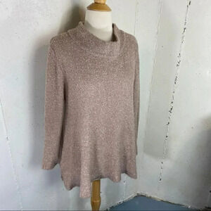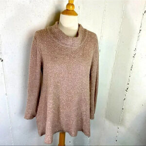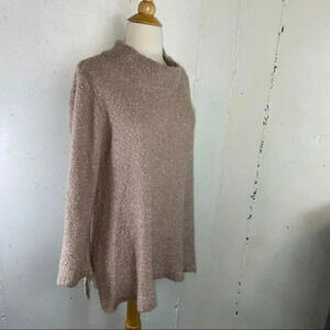 Umgee M pink fuzzy mock neck oversize soft sweater with side slits